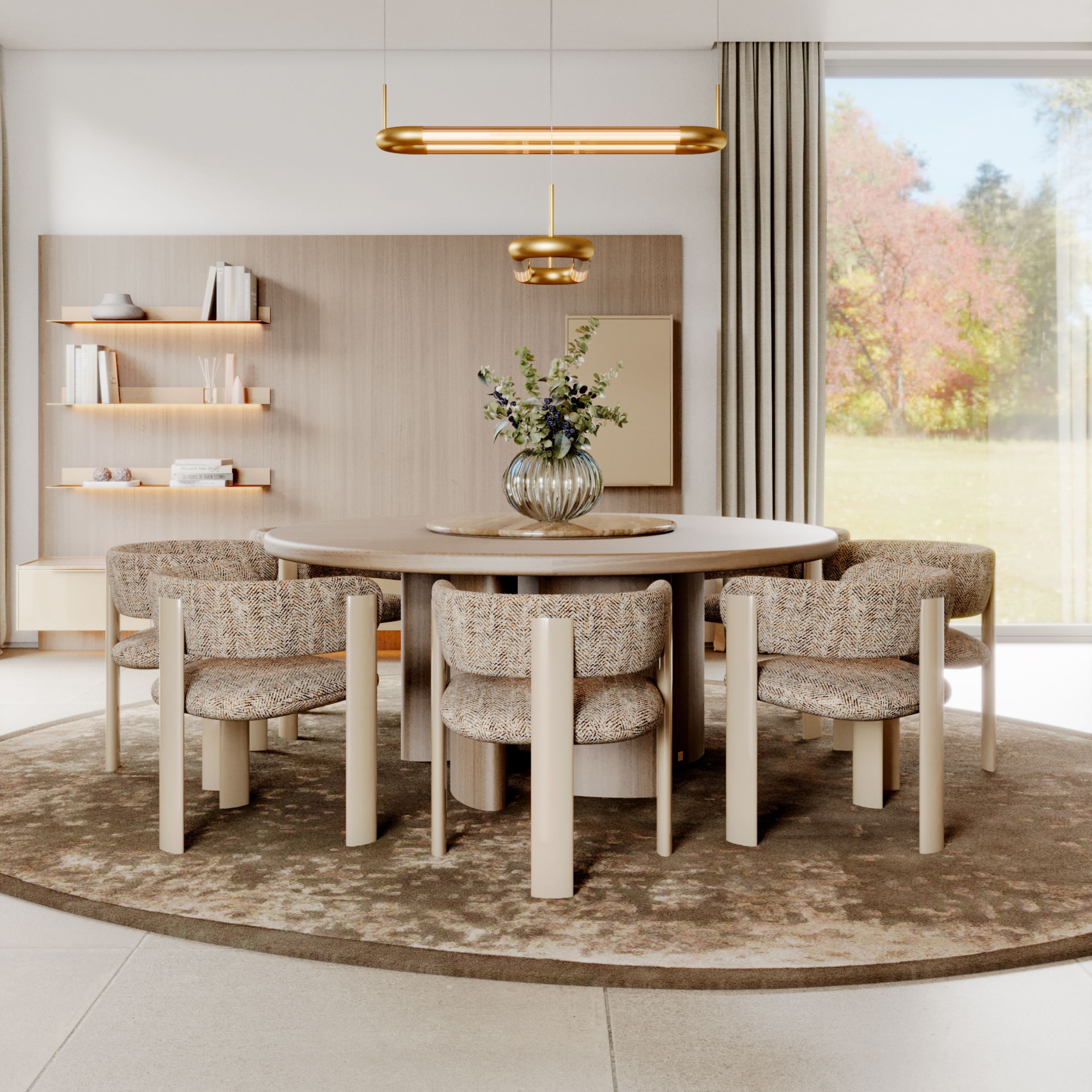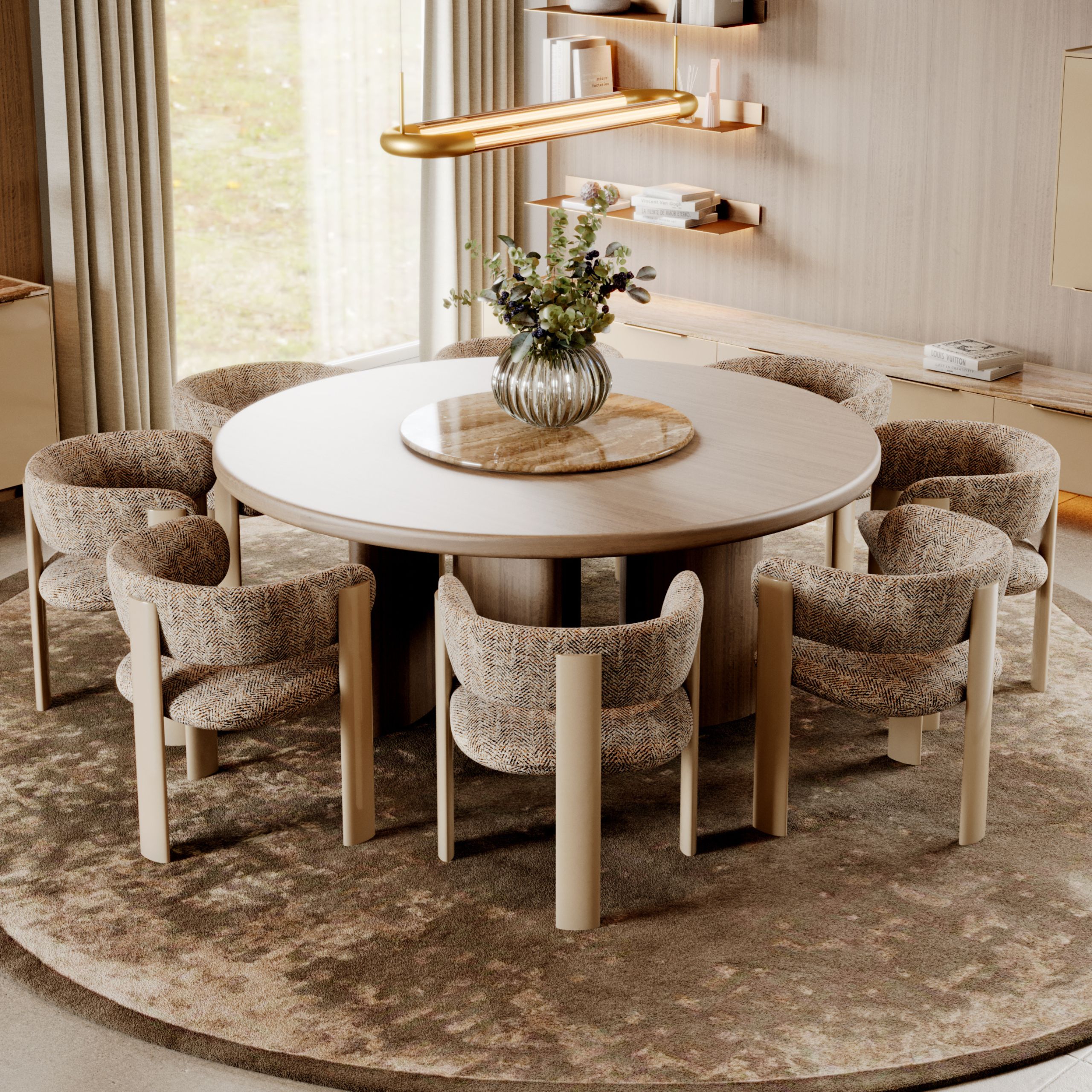 The Dolomites Round Dining Table reflects the quiet harmony found in landscapes shaped by time and shifting elements. Its circular form introduces a sense of continuity, where movement replaces direction, and every angle invites connection. Crafted from the finest wood, its surface radiates warmth, while the base recalls the irregular strength of the Dolomites, shaped by nature’s steady transformation.