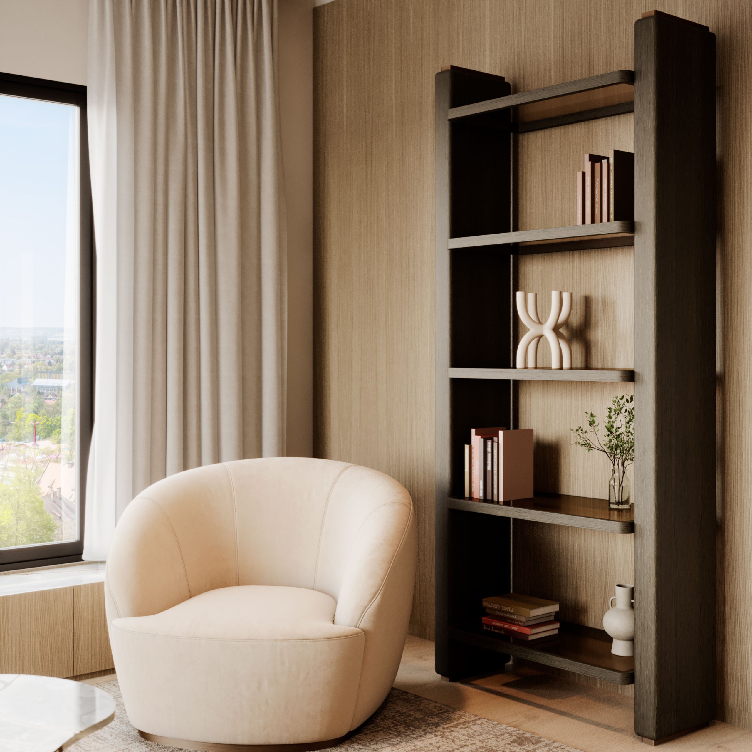 The Foz Bookcase evokes the rhythm of a river as it flows toward the sea, where each shelf becomes a quiet pause in the journey of space and material. Crafted from wood, it celebrates the organic beauty of grain and texture, capturing both movement and stability in a single, elegant form.