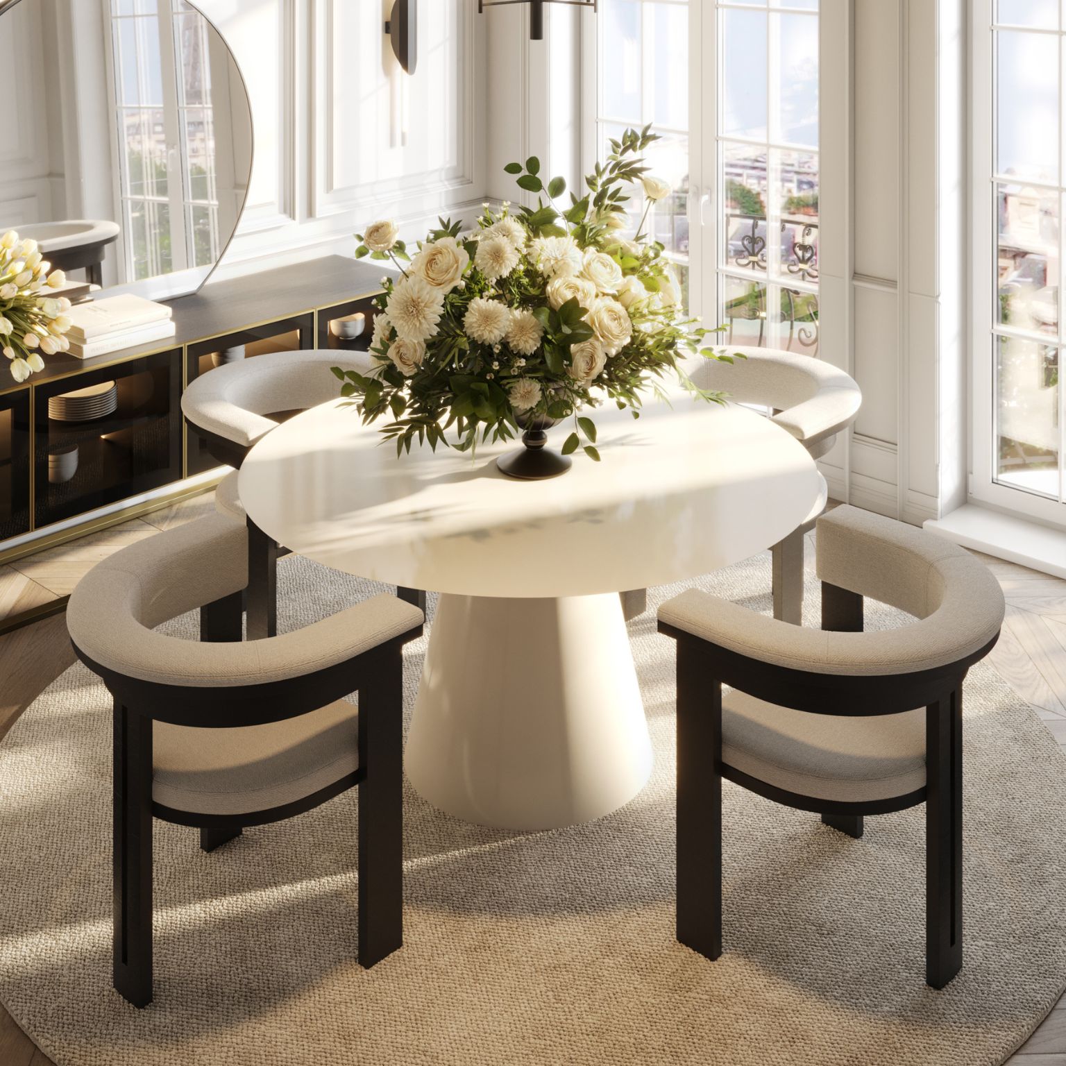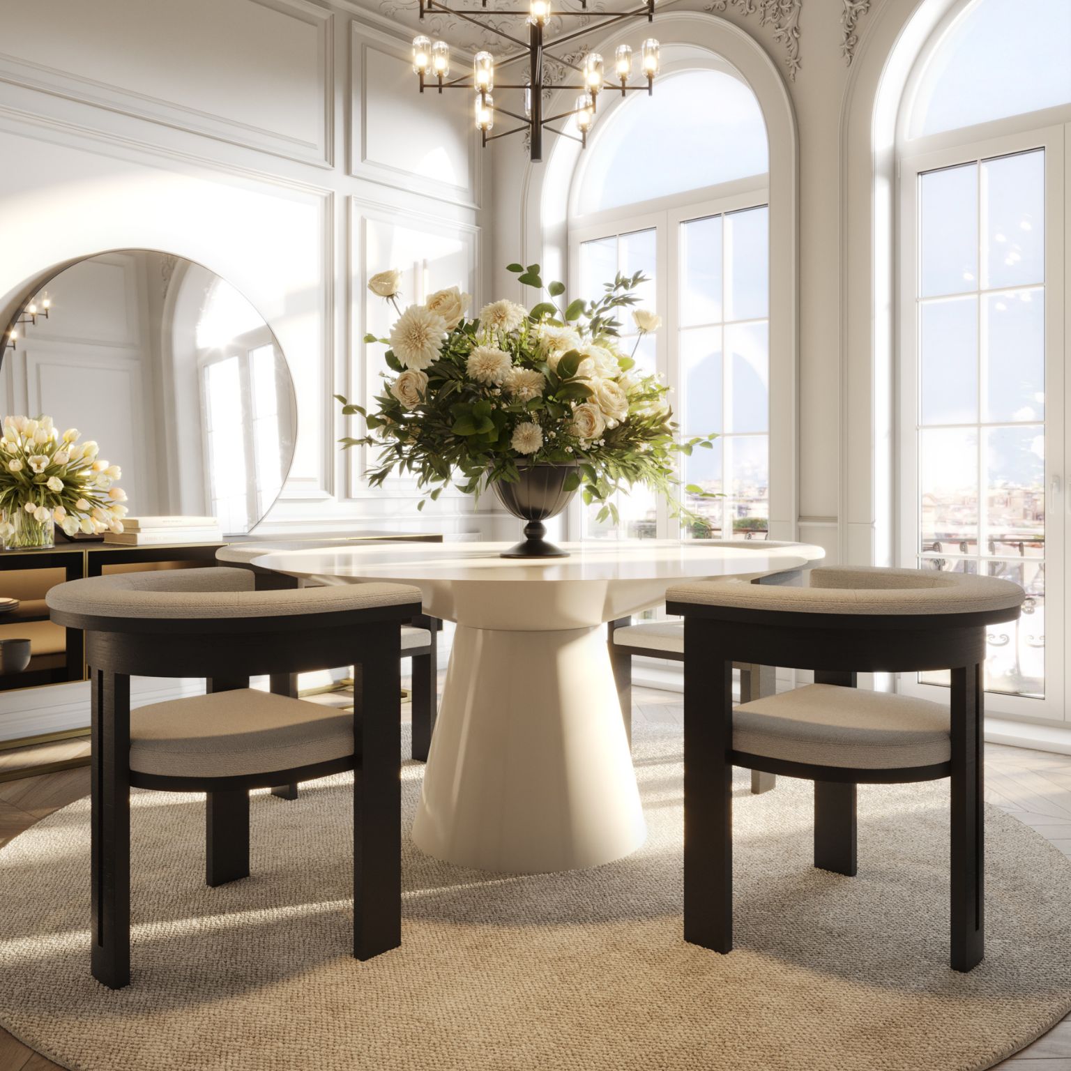 A chair that stands out for its magnificence, the Kensington chair makes a difference. With its curvilinear lines it offers greater comfort to your dining room. The high quality fabric contrasts perfectly with the lacquered structure, ideal for an exclusive living room.