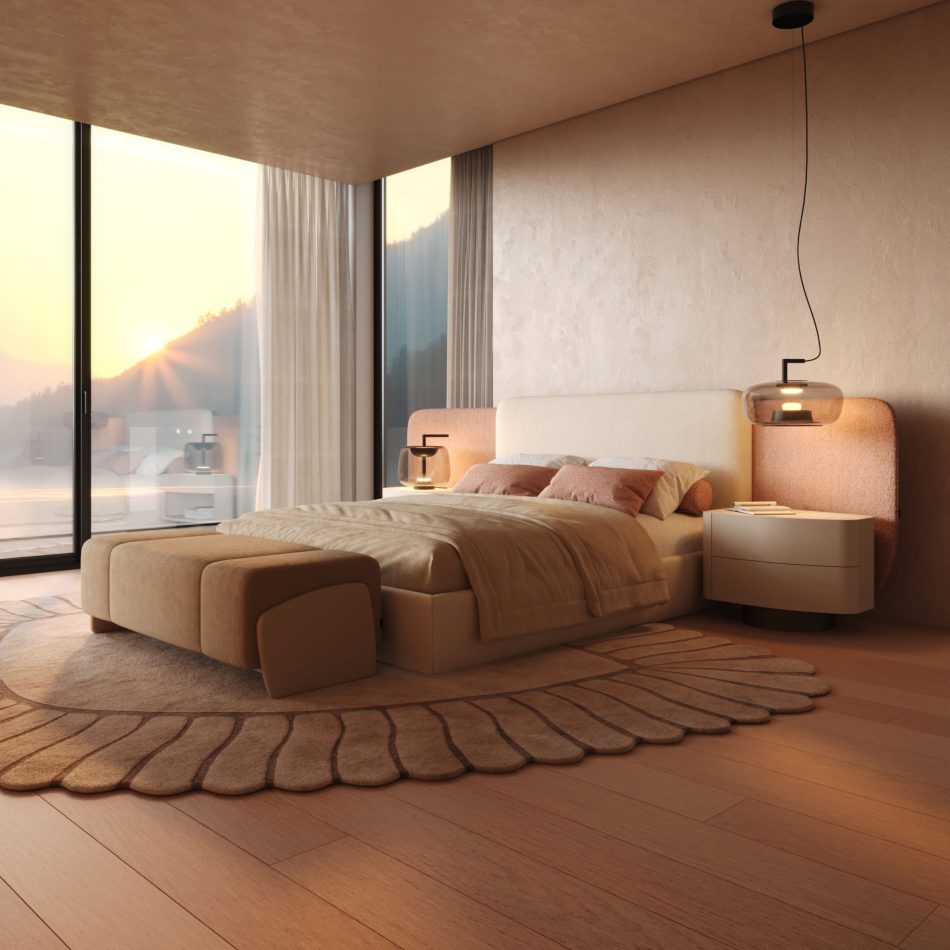 The fluid curves of a river inspire the design behind this stunning furniture piece. A contemporary bed made to integrate a sophisticated master bedroom that respects comfort above all else.