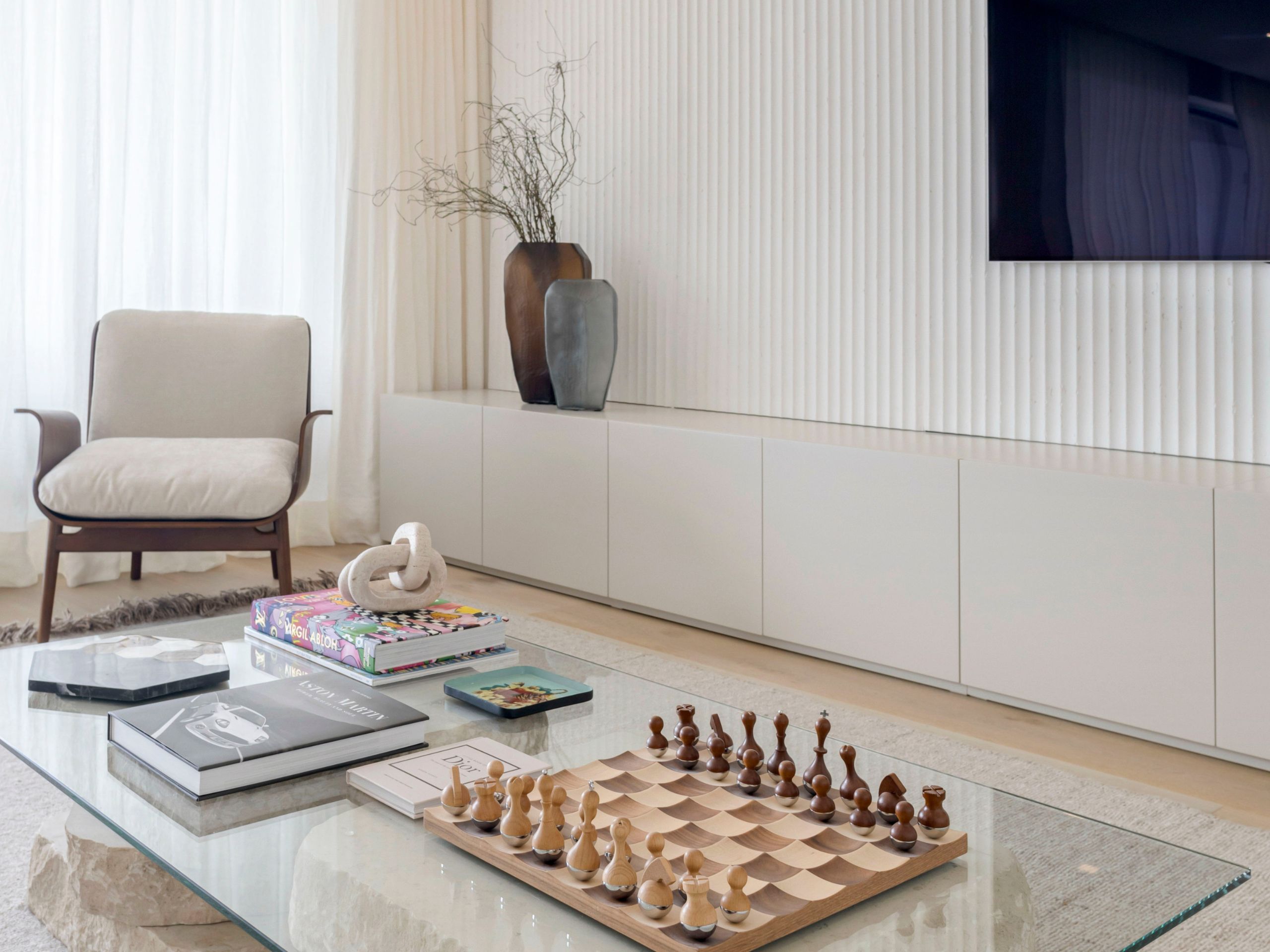 In the living room, the Sevilha TV Cabinet introduces structure through its elegant presence, combining functionality with a timeless aesthetic. Its clean lines and material richness subtly enhance the surrounding environment, creating a balanced focal point.