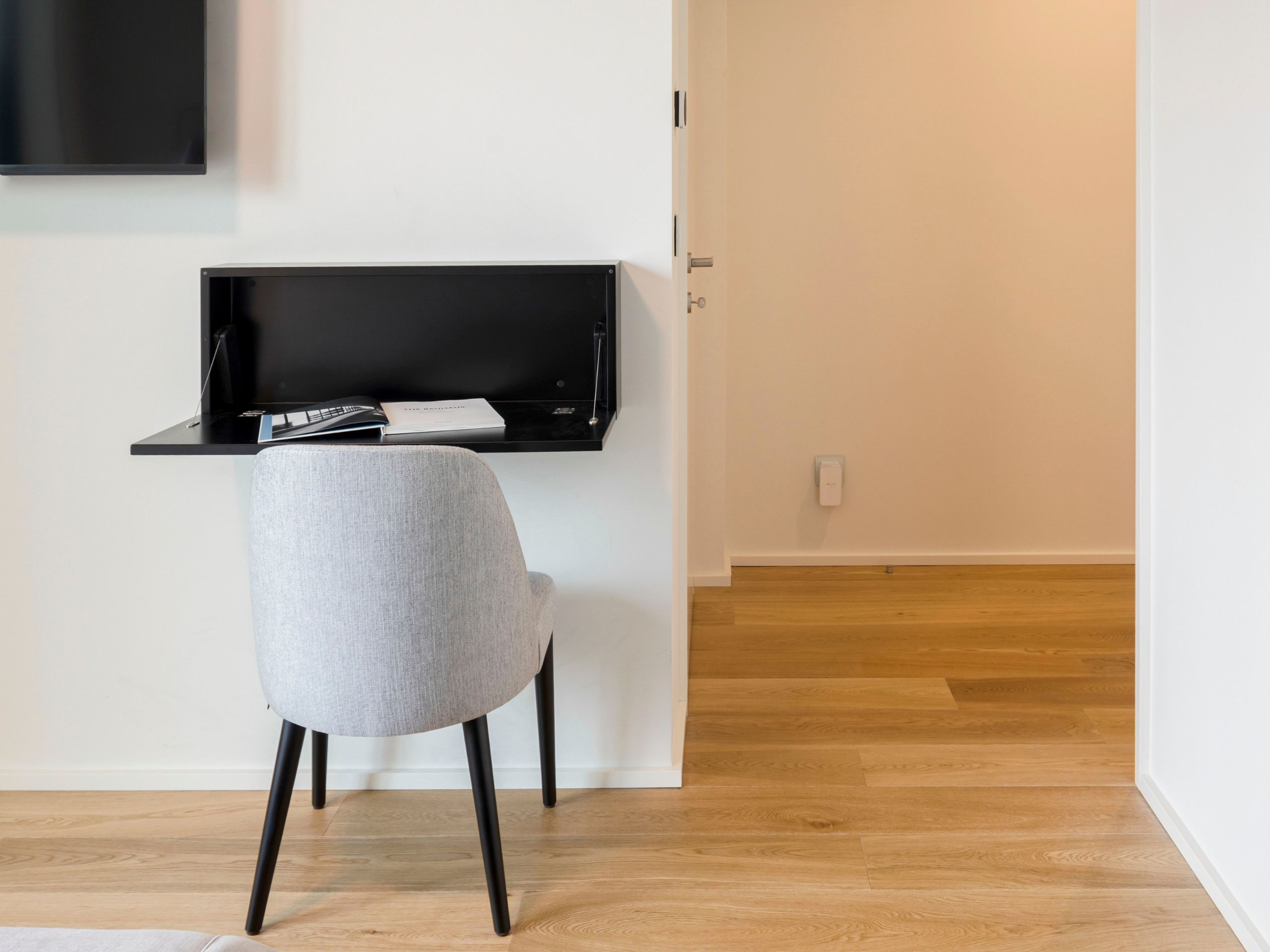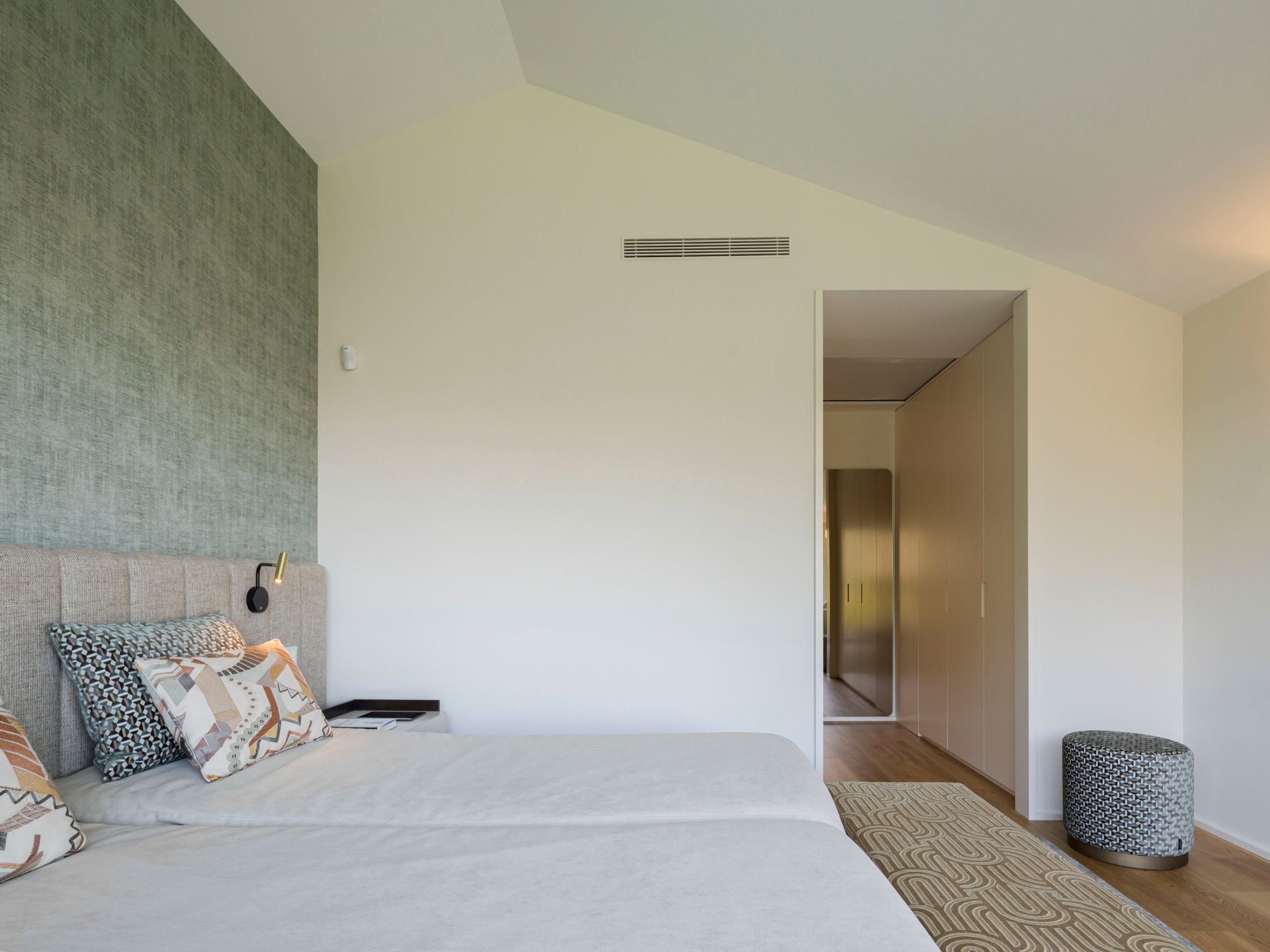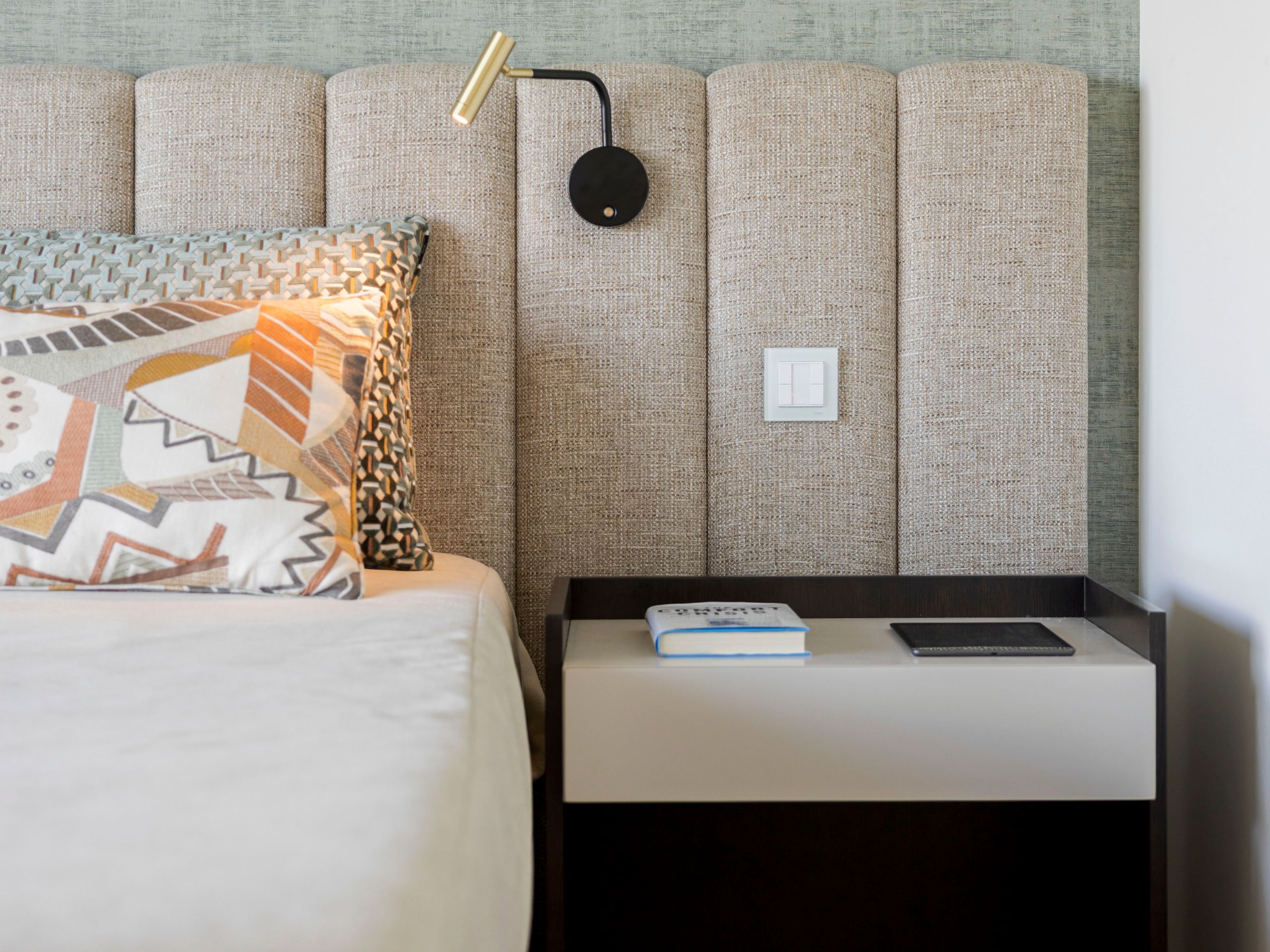 The guest bedroom was designed as a calm and welcoming retreat. The bedroom décor remains simple, ensuring everything needed for a perfect night’s rest. A bespoke version of the Sublime Bed defines the space with its soft presence, while the Lotus Night Table adds a refined and practical touch.