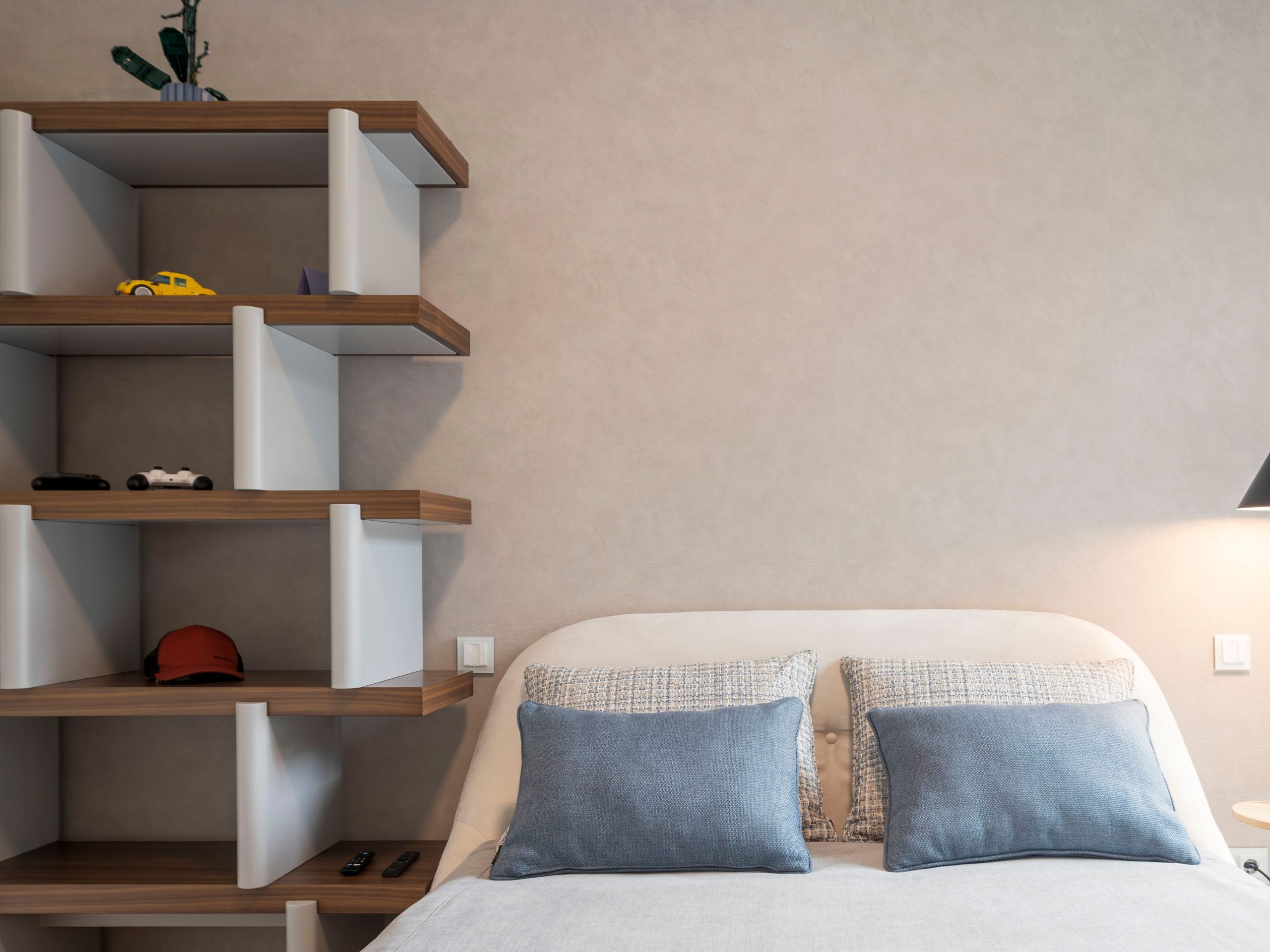 The youngest family member’s bedroom was designed to evolve over time, balancing personality with simplicity. The Voilier Bed establishes a comfortable foundation, combining clean lines with the softness expected from modern bedroom furniture.
