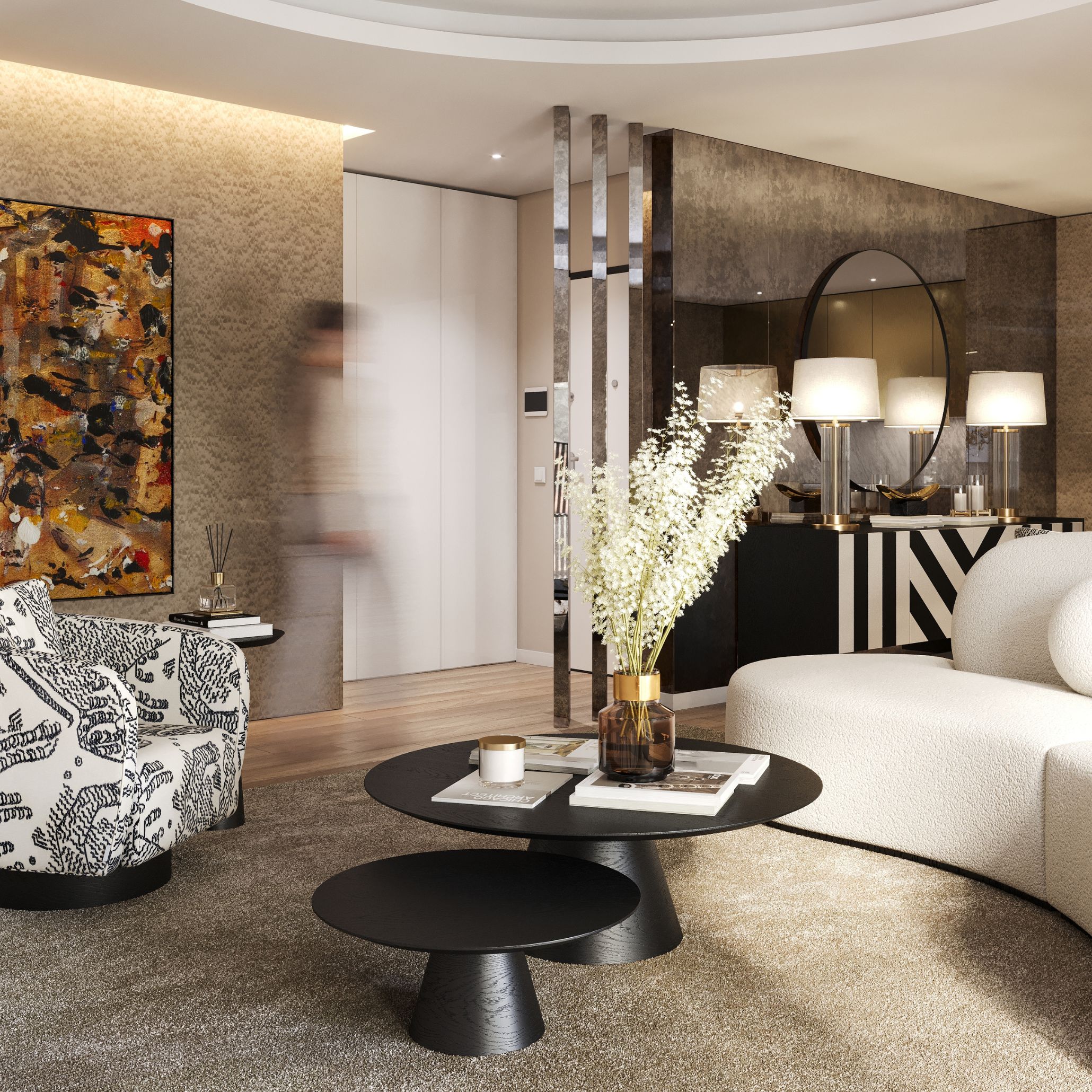 The result reveals a vision of contemporary living where aesthetics and functionality coexist naturally, guided by contrast, tactile richness, and a careful chromatic balance that connects every space, reflecting the essence of luxury home furniture.